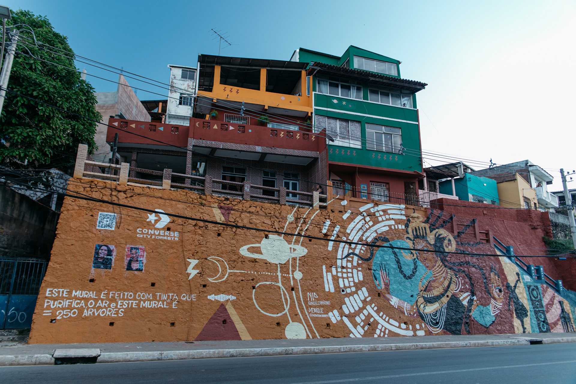O Converse City Forests já deixou suas marcas pelo mundo. Em 2021, foi a vez de unir criativos para criar novos murais sustentáveis, quebrando barreiras sobre temas raciais e inspirando as próximas gerações das comunidades de Santo Amaro, no Rio de Janeiro, e do Dique do Tororó, em Salvador.