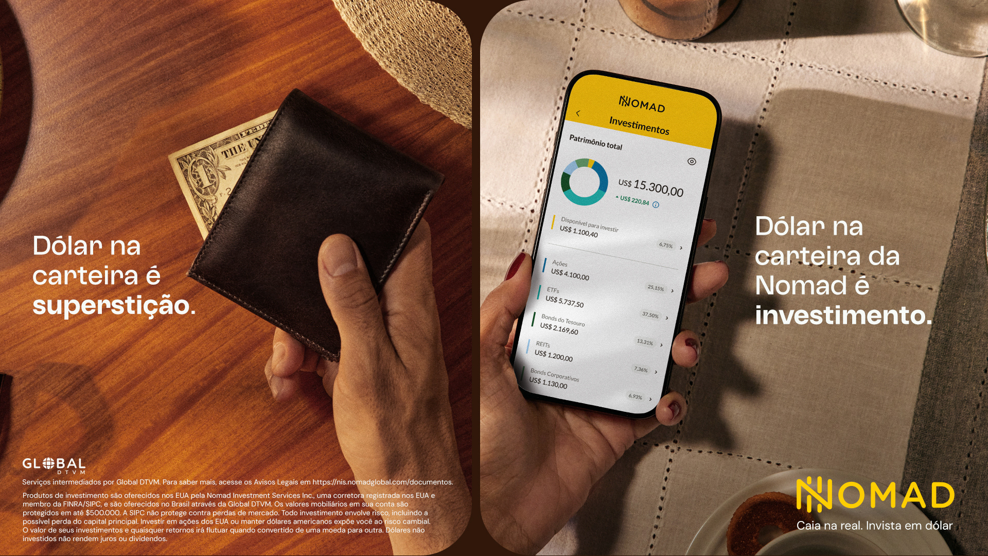 Guardar um dólar na carteira, soprar canela no primeiro dia do mês, comer nhoque no dia 29. O brasileiro é fã de uma boa simpatia para atrair prosperidade. Foi inspirado nesse comportamento tão nosso que propomos um novo caminho para buscar a tão sonhada fortuna: trocar a sorte por estratégia e colocar o dólar para trabalhar dentro da carteira de investimentos da Nomad. Com ela, mais do que guardar dólares, investir em dólar vira uma escolha inteligente.